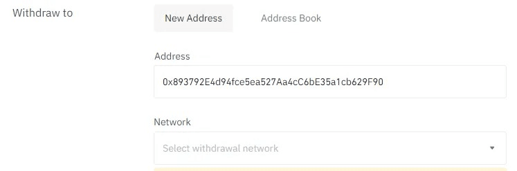 Paste it in Binance as the address to withdraw, and Select MATIC network in the dropdown