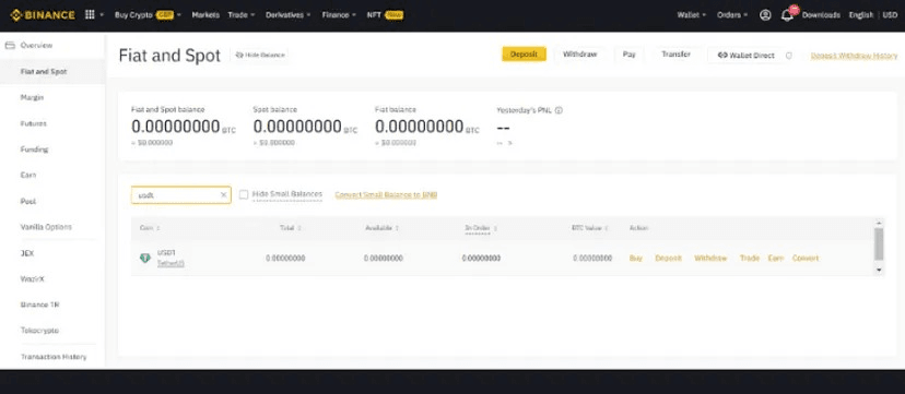 Go to Binance. Select “Wallets” and click “Fiat and Spot”.