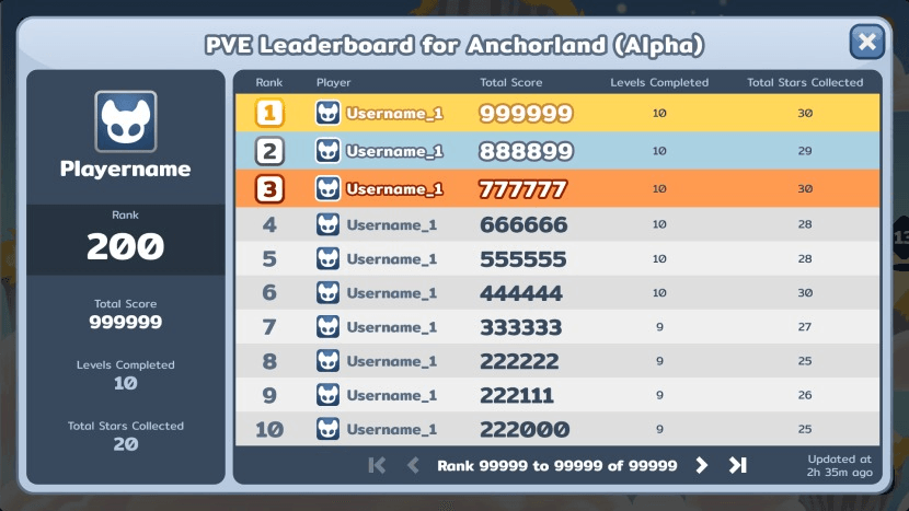 After clearing levels and obtaining points, you will be able to be placed onto the PvE or Adventure Leaderboard. Here is where you can see how well you place among other Playermon Masters.