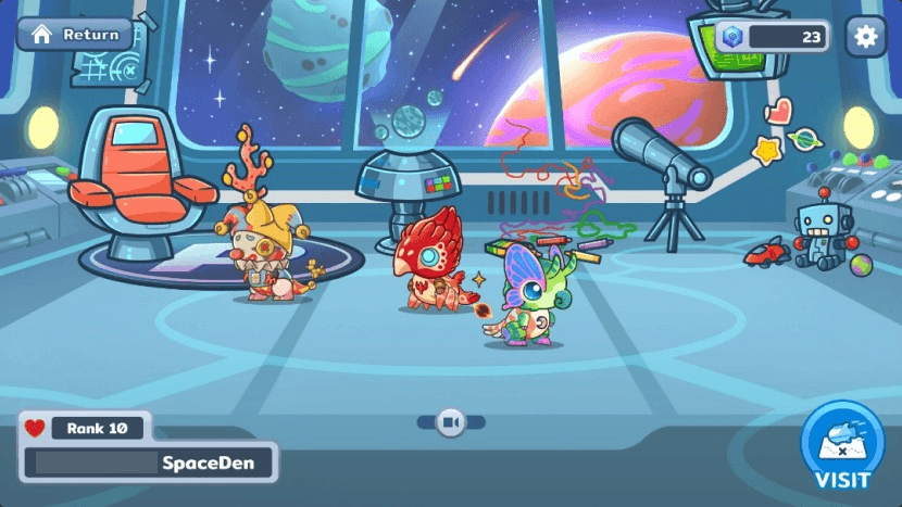 Click on the back button to later return to your own SpaceDen, or you can also find and check out a different player’s SpaceDen if you wish.