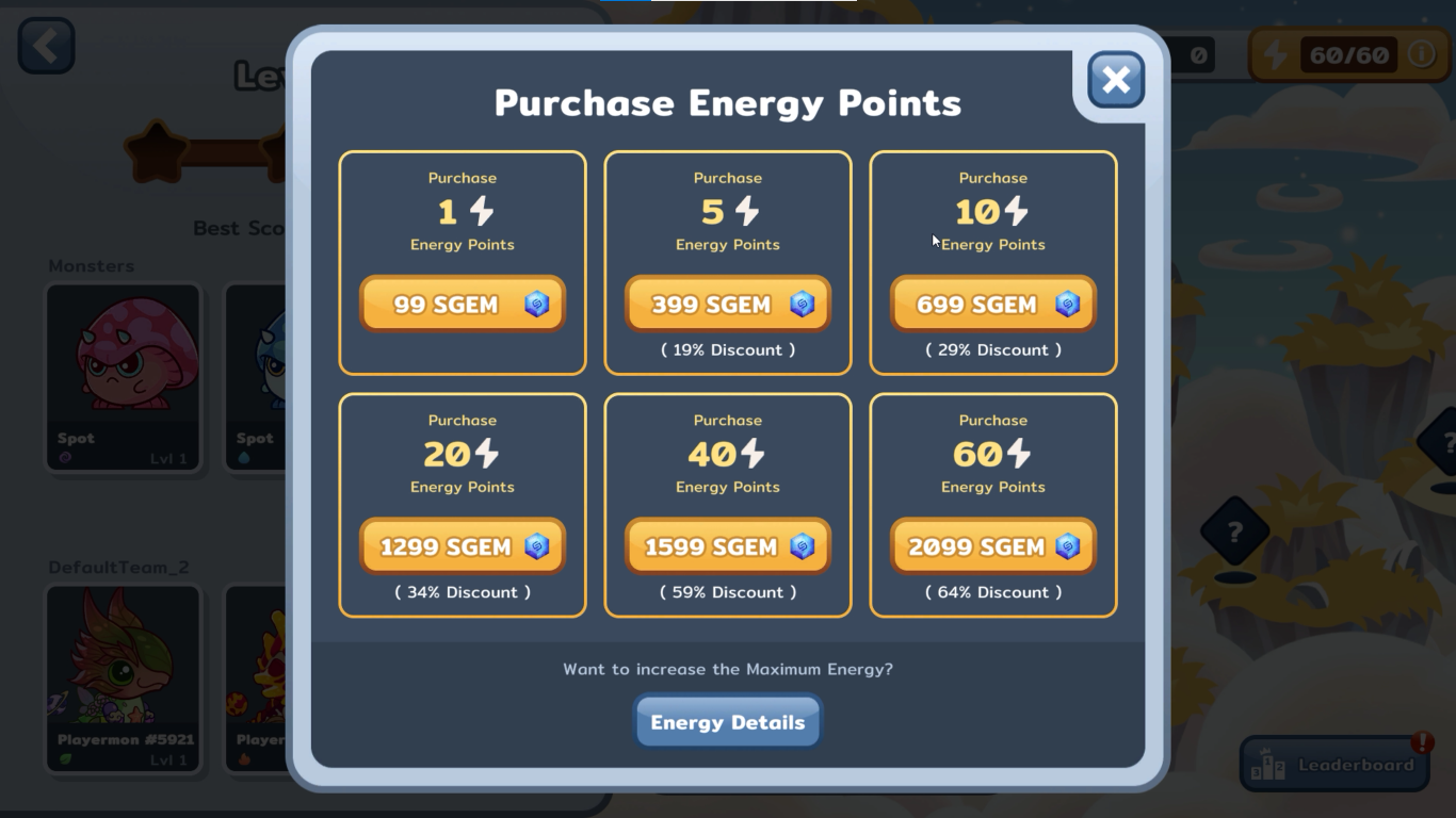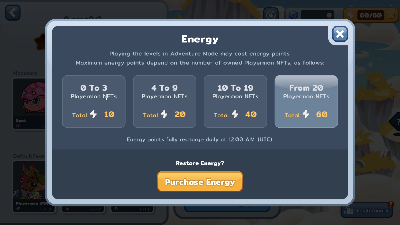 "Learn how to purchase energy in Playermon to enhance your gameplay experience."