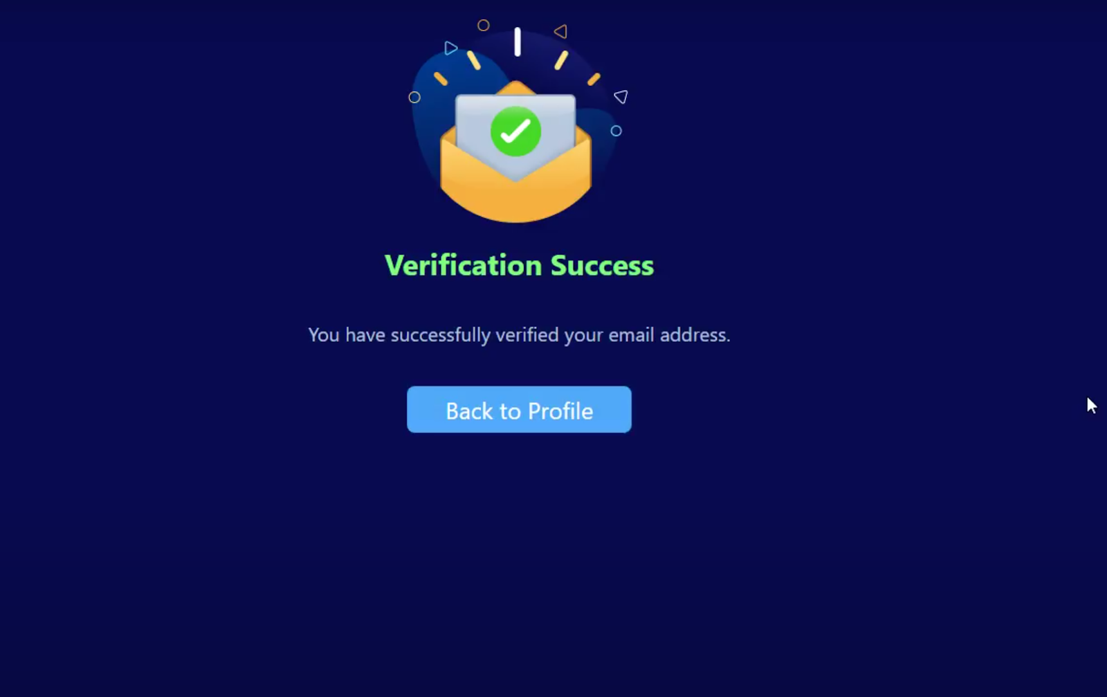 Click “Send verification email” and a message prompt will tell you to go to your email for the verification link.