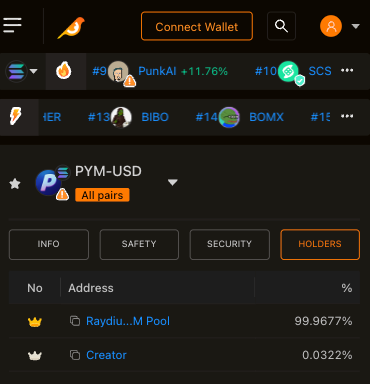 All PYM is under the Raydium AMM Pool, some leftover was due to Raydium Pool Creation Slippage