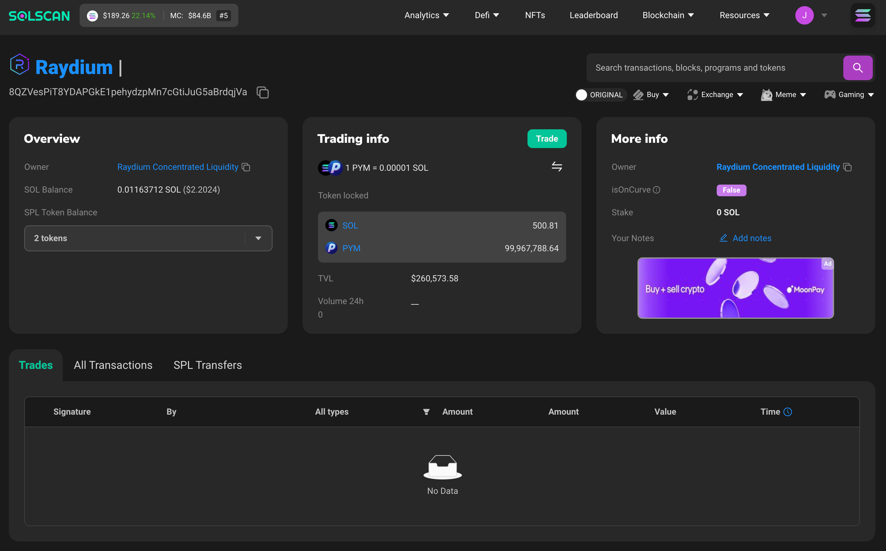 Alongside, a liquidity pool has been created, pairing 100 million PYM with 500 SOL on Raydium Concentrated Liquidity Pool, setting the stage for epic trading battles and resource management.